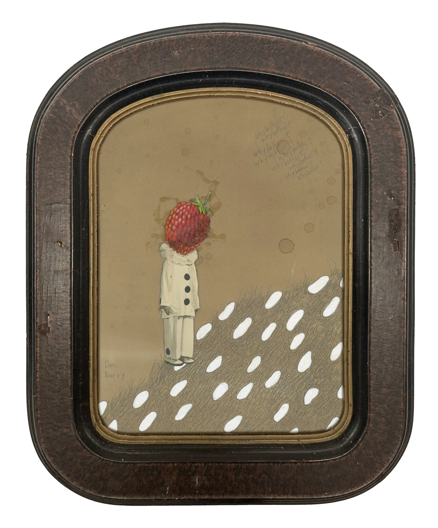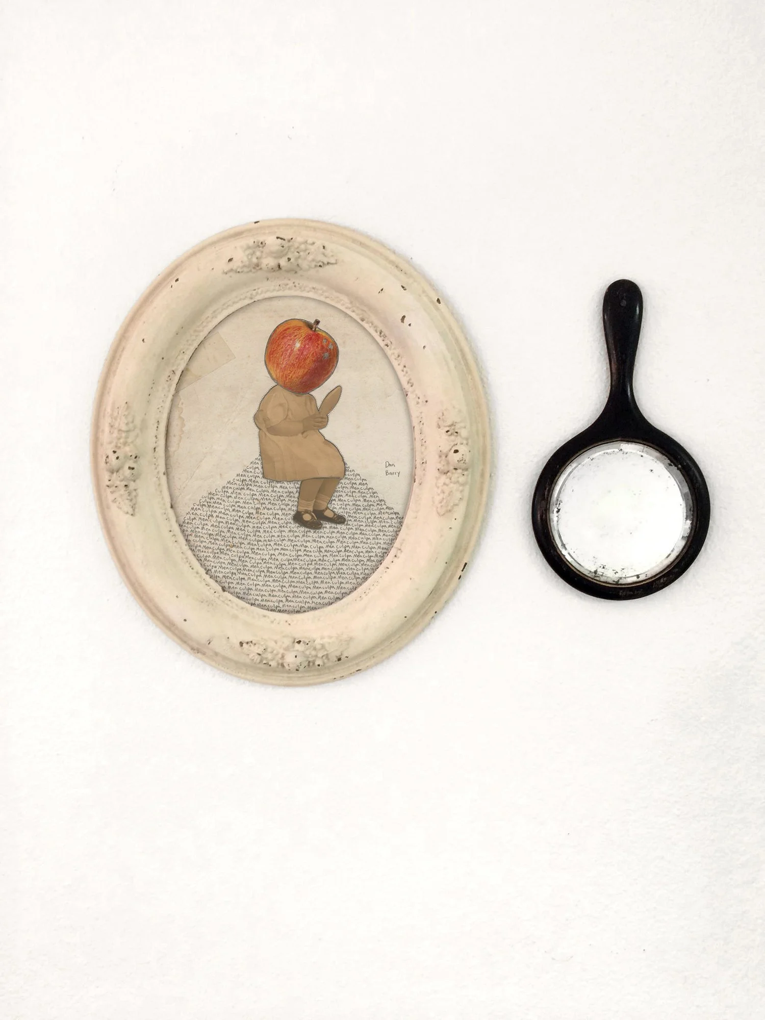 found paper, graphite, acrylic paint, antique frame / 16.25“ x 12.25“ / 2025